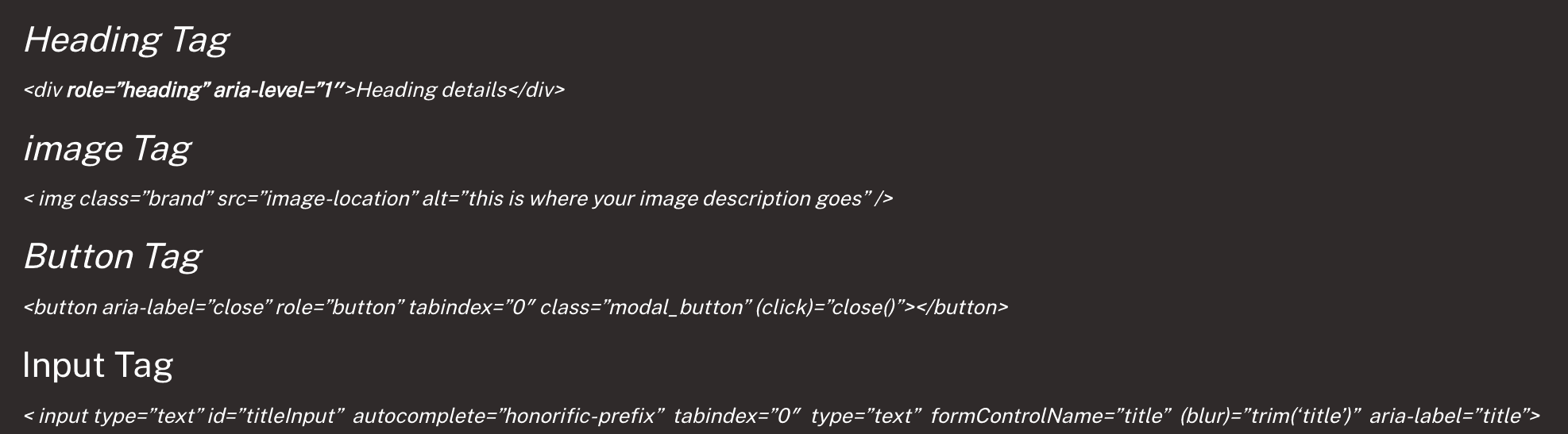 - Define ‘alt’ tags in images: Visually impaired users access web content using screen readers. Screen readers let them know what’s there in the images. Therefore, the description of links should be appropriately defined.