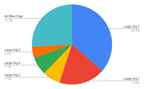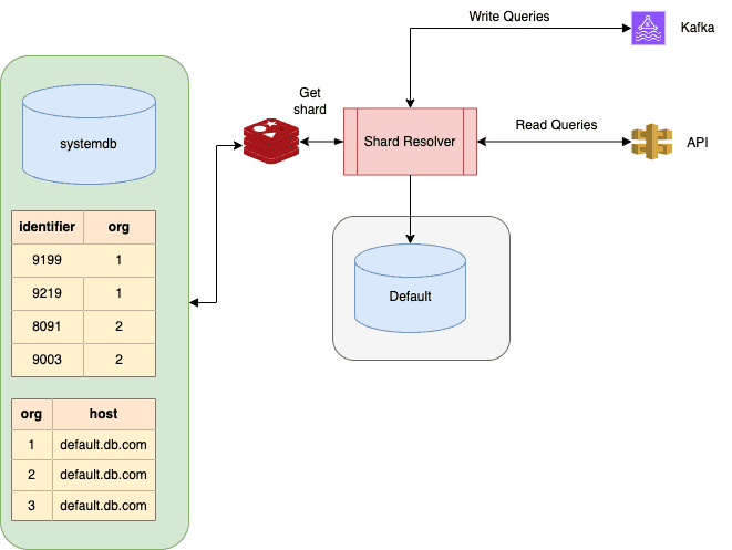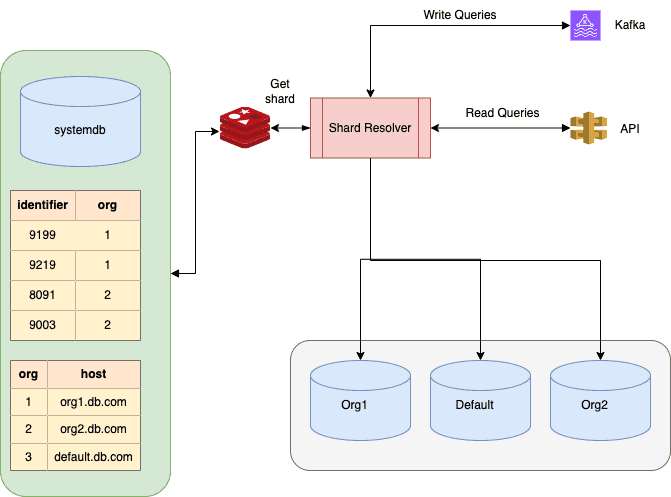 We also decided to shard based on organization but instead of keeping every organization on individual shards, we decided to keep the top 5 organizations into separate shards and keep the rest of the smaller organizations on a common shard. Going with the general hash-based sharding approach would have led to uneven distribution of load. Also, because most of our tables did not directly have organization as a column, and the mapping of a row to an organization needed certain business-specific logic, we decided to go with a custom application-level sharding solution.