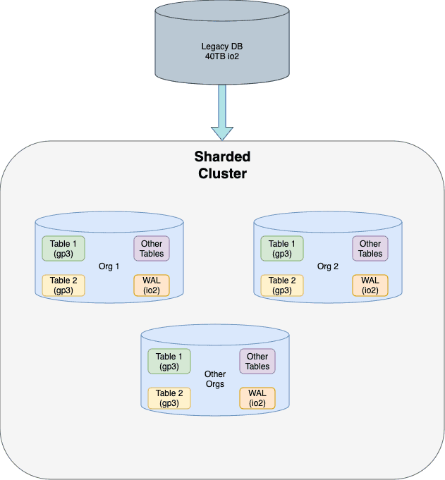 - We set up multiple database instances for the specific shards that we needed. This time we chose cheaper EBS volumes like gp3 because we would have significantly lesser data on each instance and we never needed the extremely high IOPS that io2 provided.